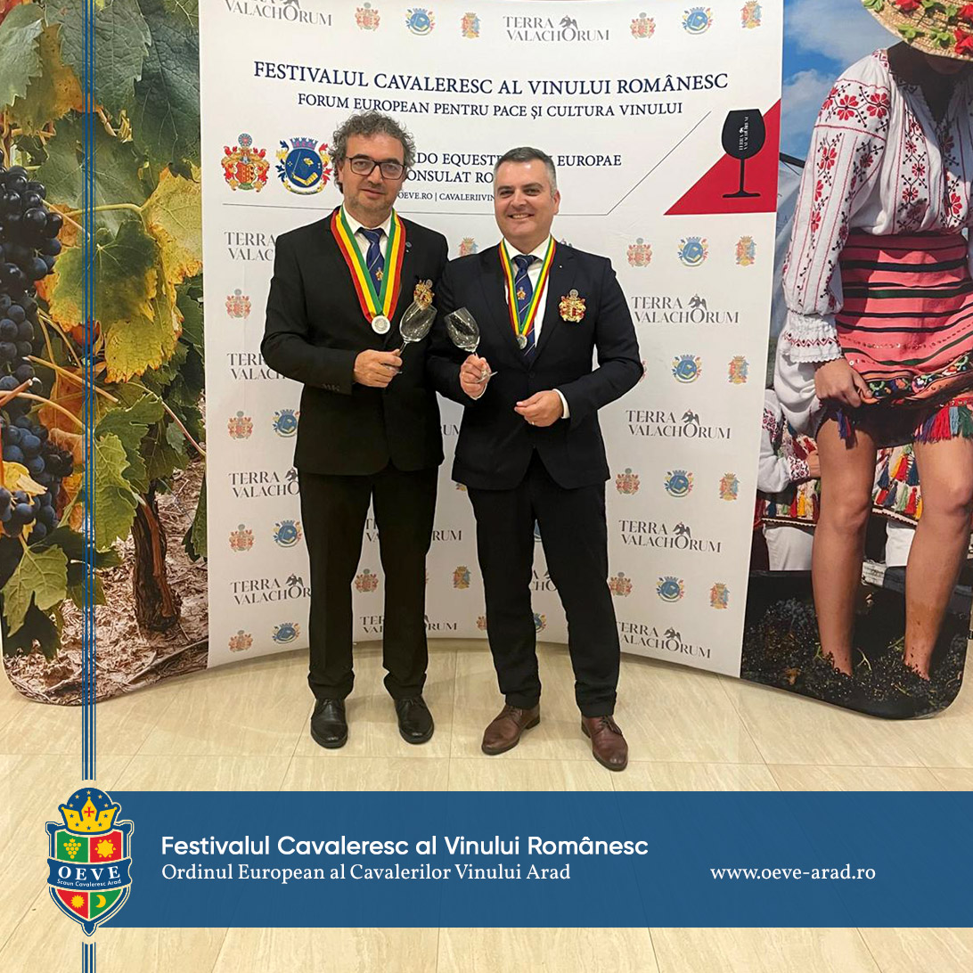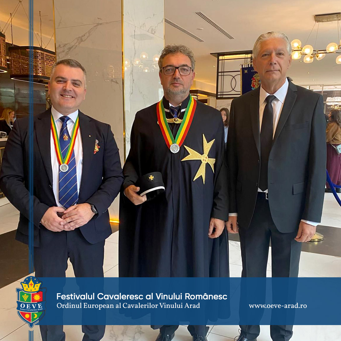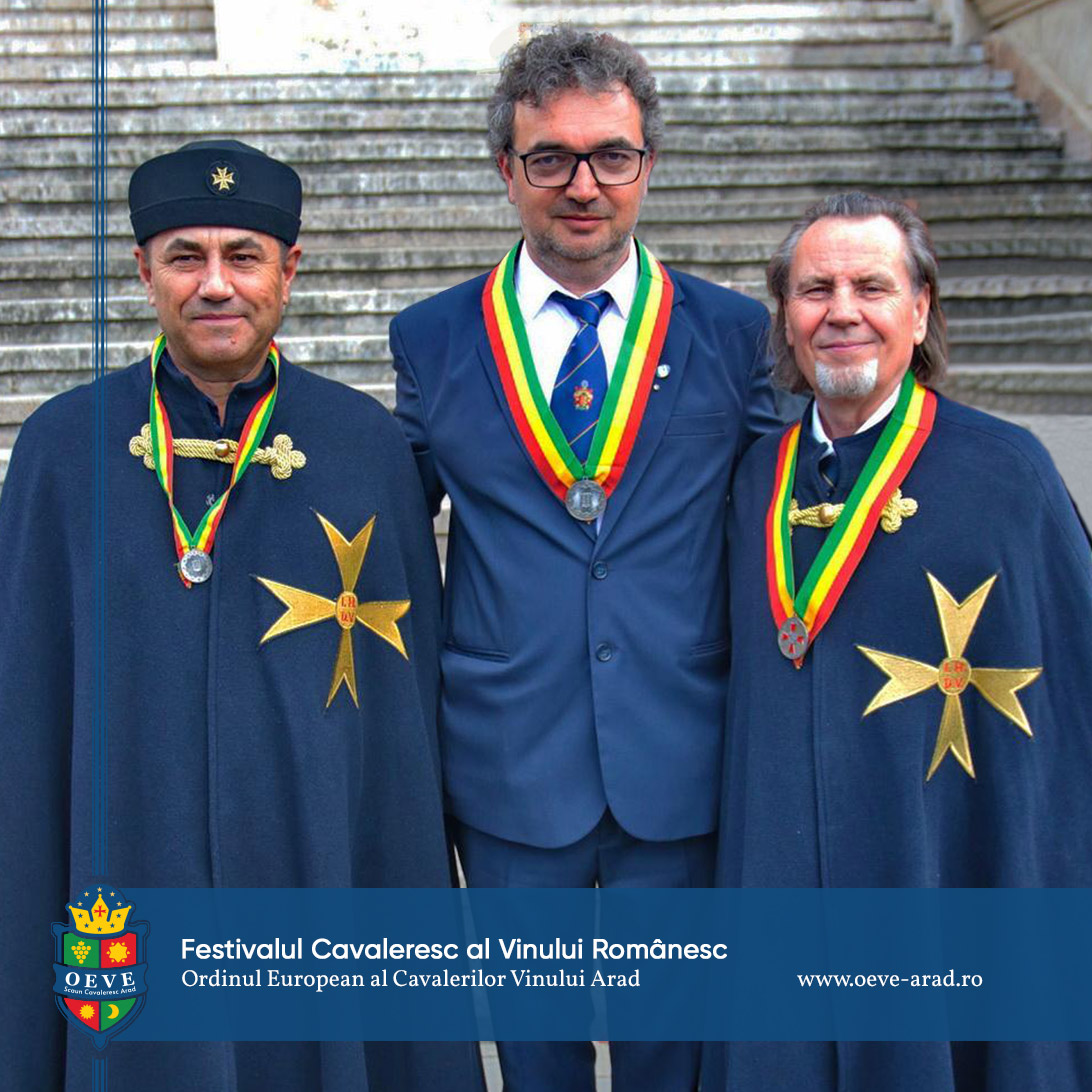 The Romanian Consulate of the European Order of the Knights of Wine promotes local cultural values in general, and wine, seen as a cultural asset, part of our national identity, in particular. Wine is an integral part of the European identity, and the objective of the Ordo Equestris Vini Europae (European Order of the Knights of Wine) is to maintain this common cultural heritage in all its diversity. OEVE Knight’ Chair Arad represents the Arad branch of the order.