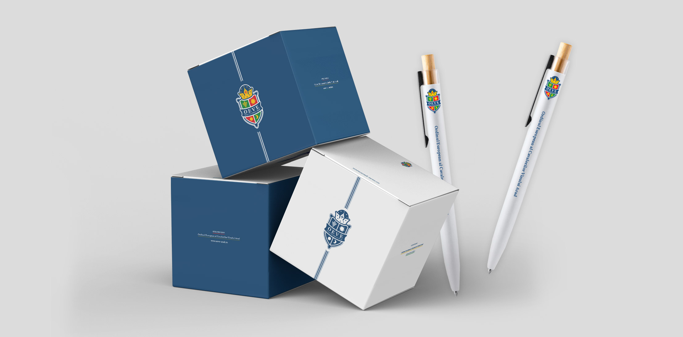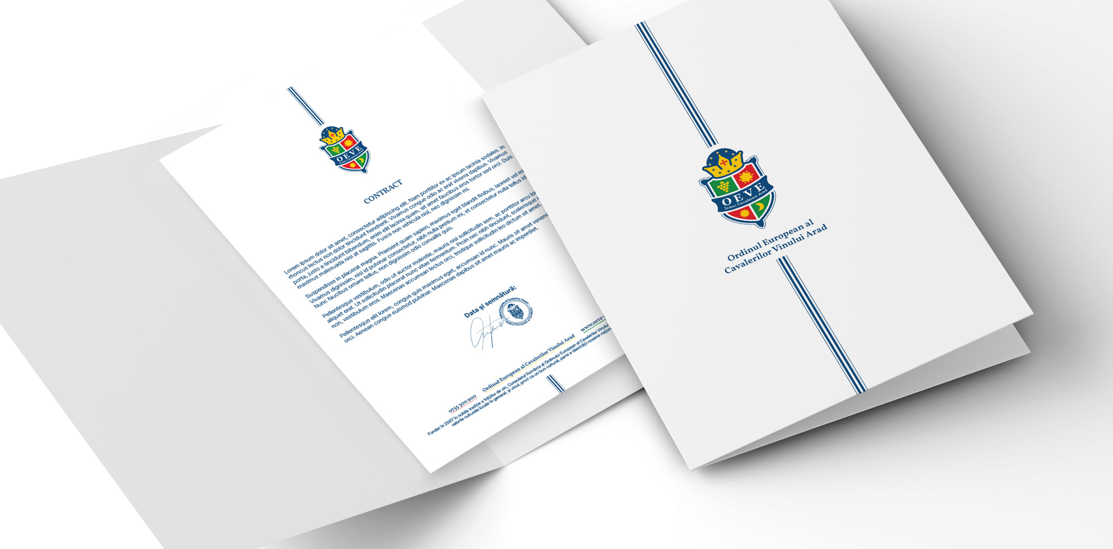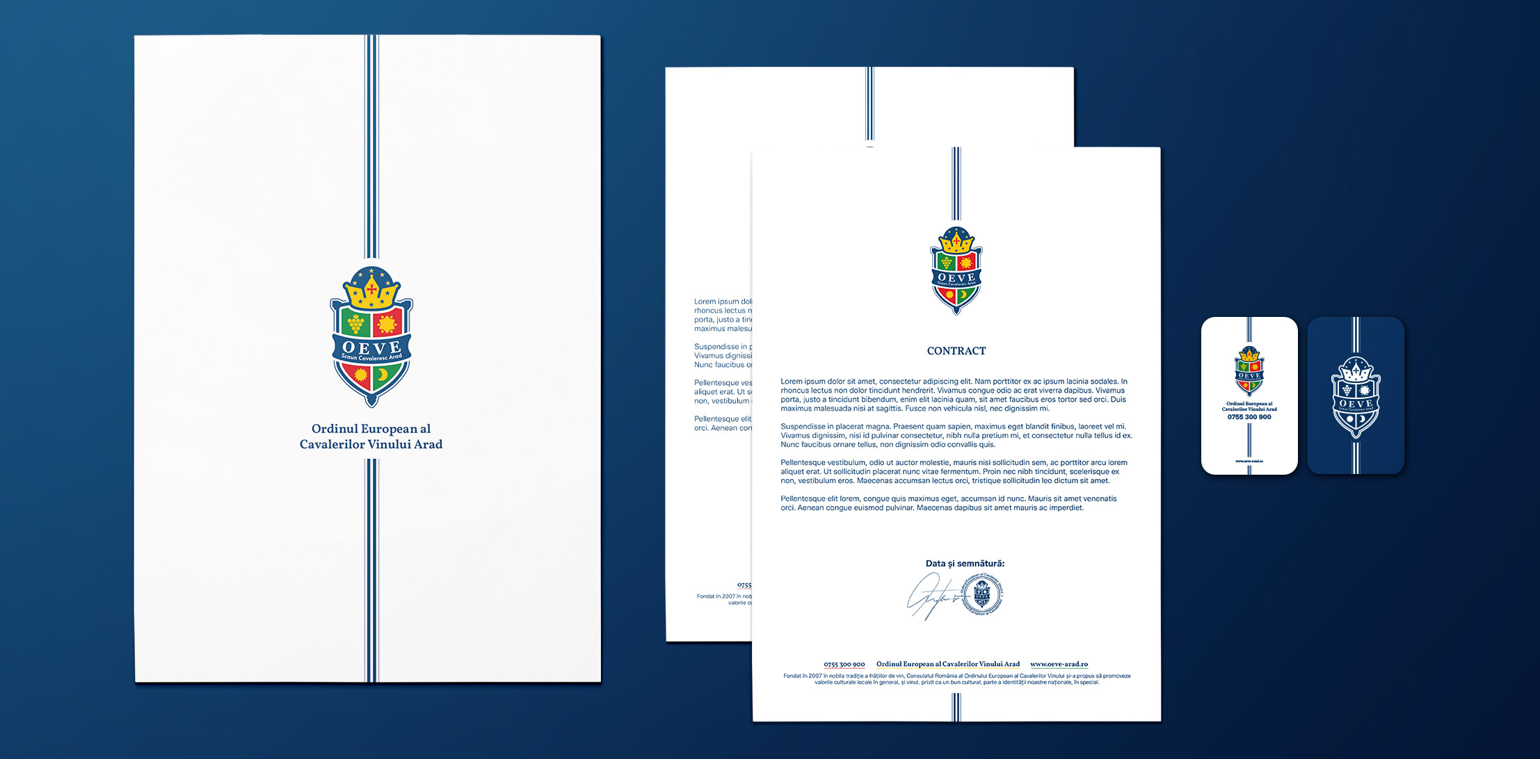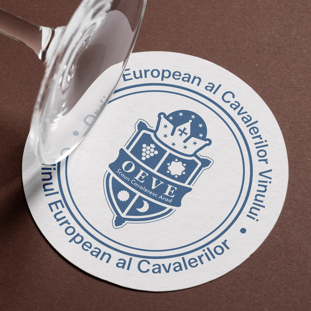 The OEVE Knight' Chair Arad logo combines essential symbols: grapes, sun, moon and shield, reflecting the winemaking tradition and the values of the community. The color palette has symbolic meaning: green - white wine, freshness and nature, red - red wine, passion and energy, yellow - noble wine, refinement, blue - balance and depth. Together, the elements create a distinctive identity, which expresses the connection between tradition, innovation and the winemaking culture of Arad.